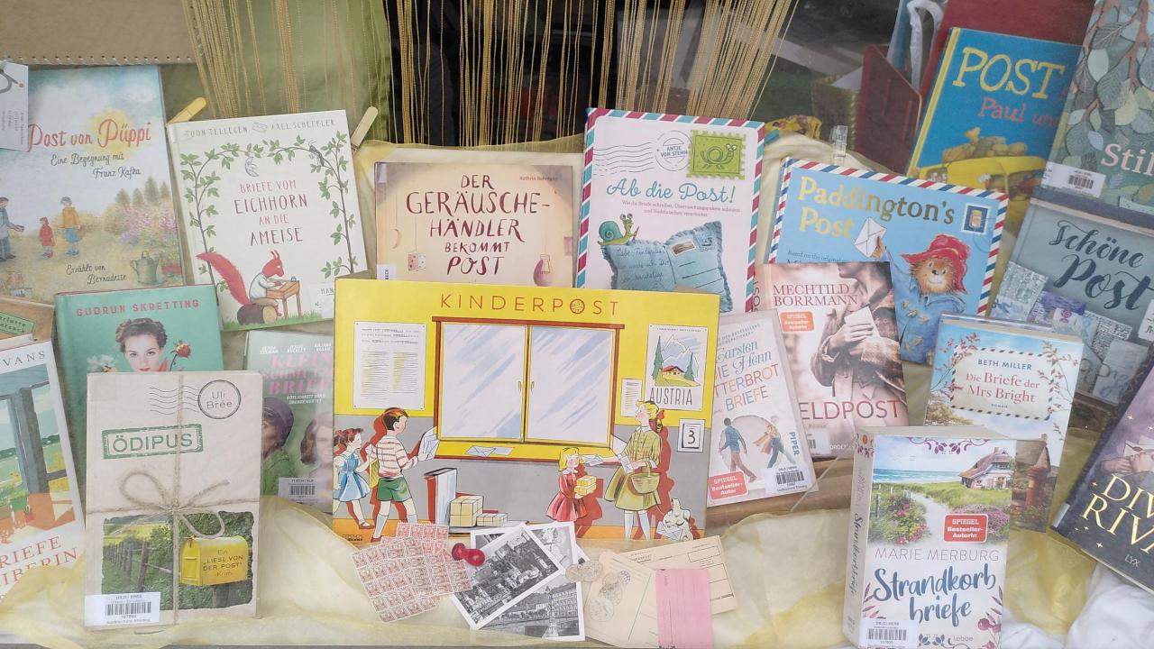 Stadtbücherei Eferding Februar, 2026 Schaufenster "Ab die Post" "Post & Briefe schreiben"Alle Medien zum Thema Post und Briefe schreiben ist derzeit im Schaufenster versammelt, und durchwegs ganz frische Medien.Ganz passend zum Valentinstag!